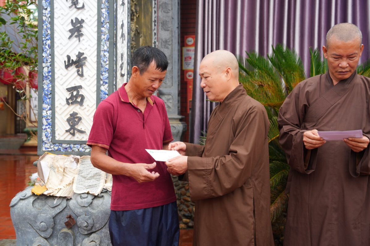 Cũng trong lần thăm hỏi này, đoàn cũng đã trao tặng 200 phần quà hỗ trợ cho bà con nhân dân tại Nhà Văn hóa xã Đa Phúc, với tổng trị giá quà tặng hơn 250 triệu đồng. Phát biểu tại buổi trao quà, Hòa thượng Thích Bảo Nghiêm chia sẻ: “Được sự chỉ dạy của Đức Pháp chủ GHPGVN, với tinh thần ‘lá lành đùm lá rách’, Ban Trị sự GHPGVN TP.Hà Nội cùng Đạo tràng Pháp Hoa miền Bắc mong muốn chia sẻ, động viên bà con sớm vượt qua khó khăn, ổn định cuộc sống. Mong rằng sau bão lũ, mọi người sẽ lại có được sự bình yên”.