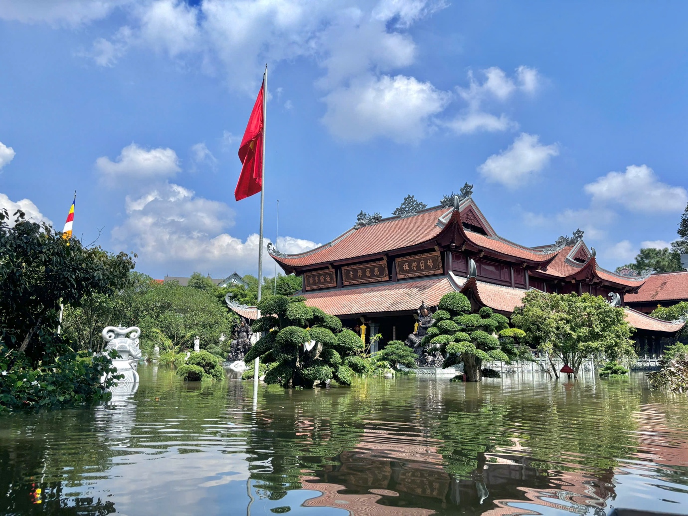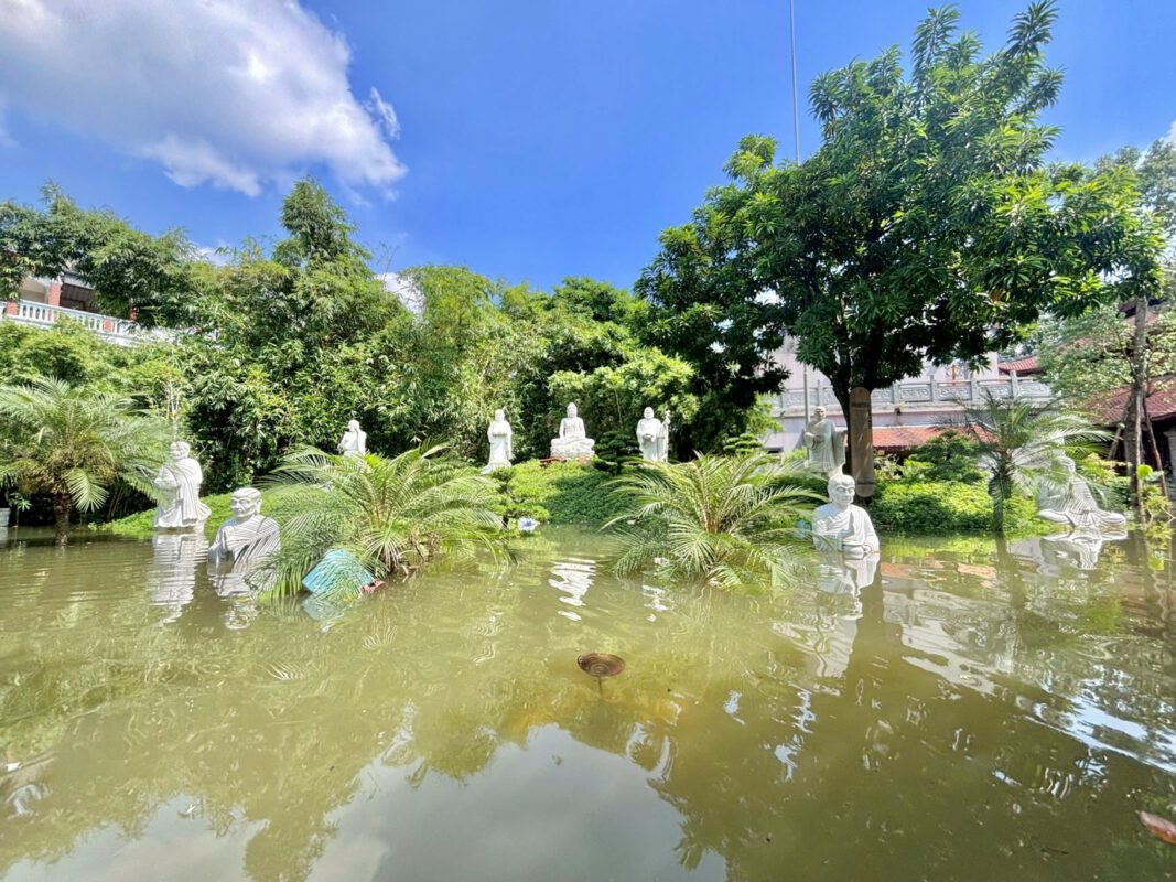 Thượng tọa trụ trì Thích Chiếu Tuệ, trụ trì chùa Vạn Phúc cho biết, do chịu ảnh hưởng trực tiếp của bão lũ, nước dâng ngập sâu khắp khuôn viên, những ngày qua, chư Tăng và Phật tử vẫn ngày đêm khắc phục hậu quả, thu dọn từng viên gạch, từng pho tượng bị bùn phủ lấp.