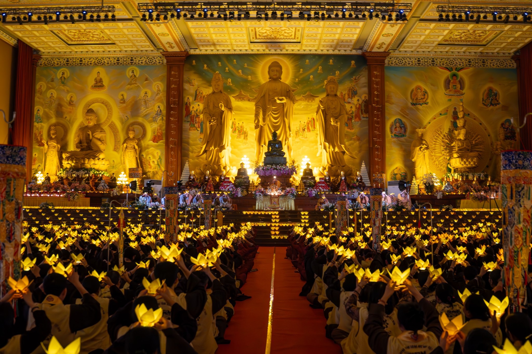 Vào tối ngày 14/03/2026 (26 tháng Giêng năm Bính Ngọ), trong khuôn khổ pháp hội đã diễn ra Đêm Hoa Đăng cầu an đầy trang nghiêm và xúc động. Dưới sự chủ trì của Thượng tọa Thích Đạo Thịnh, quý chư Tôn đức Tăng Ni và sự tham dự của hàng nghìn Phật tử, buổi lễ diễn ra trong không khí thanh tịnh và ấm áp. Trong ánh sáng lung linh của hàng nghìn ngọn nến hoa đăng, đại chúng nhất tâm niệm Phật và dâng lời cầu nguyện cho quốc thái dân an, thế giới hòa bình, chúng sinh an lạc.