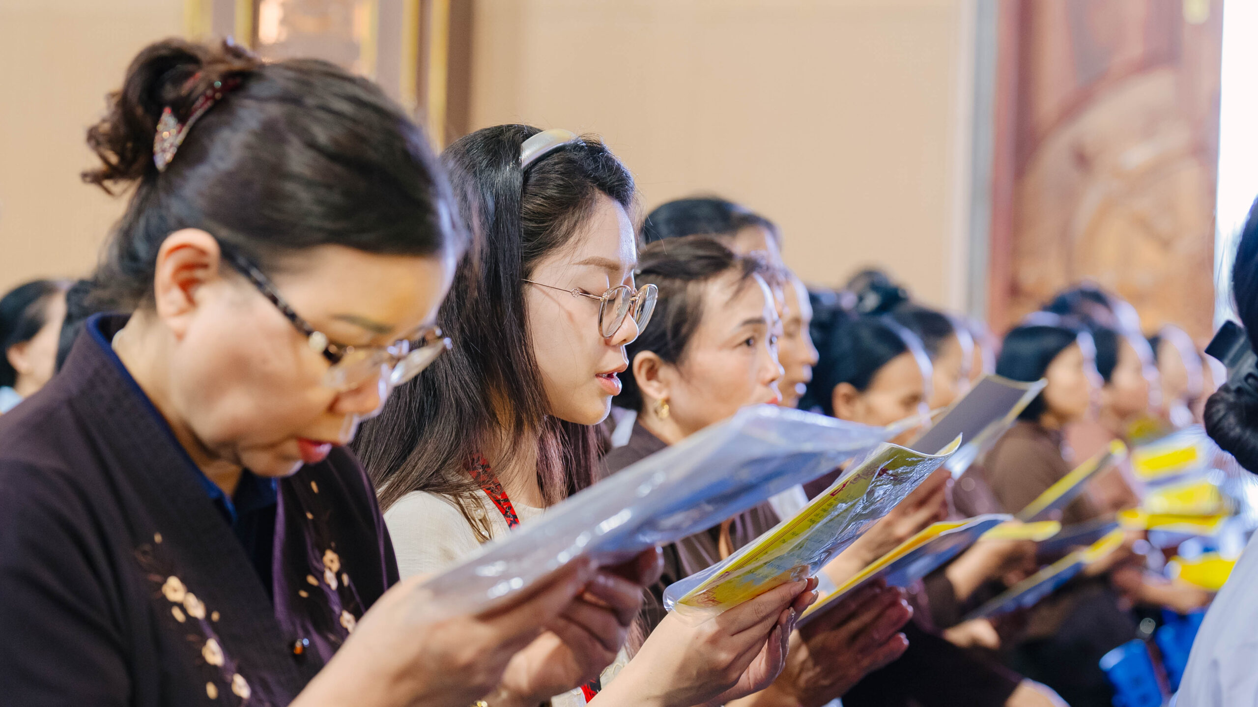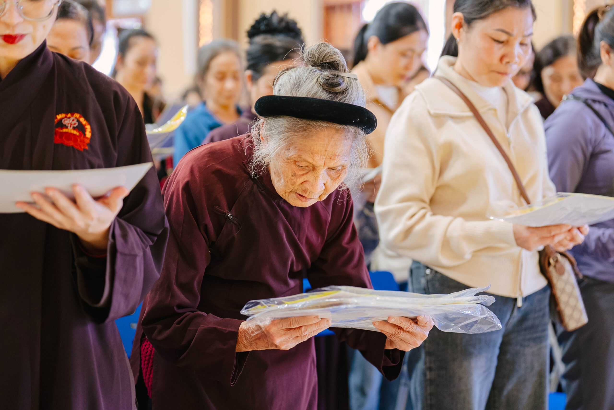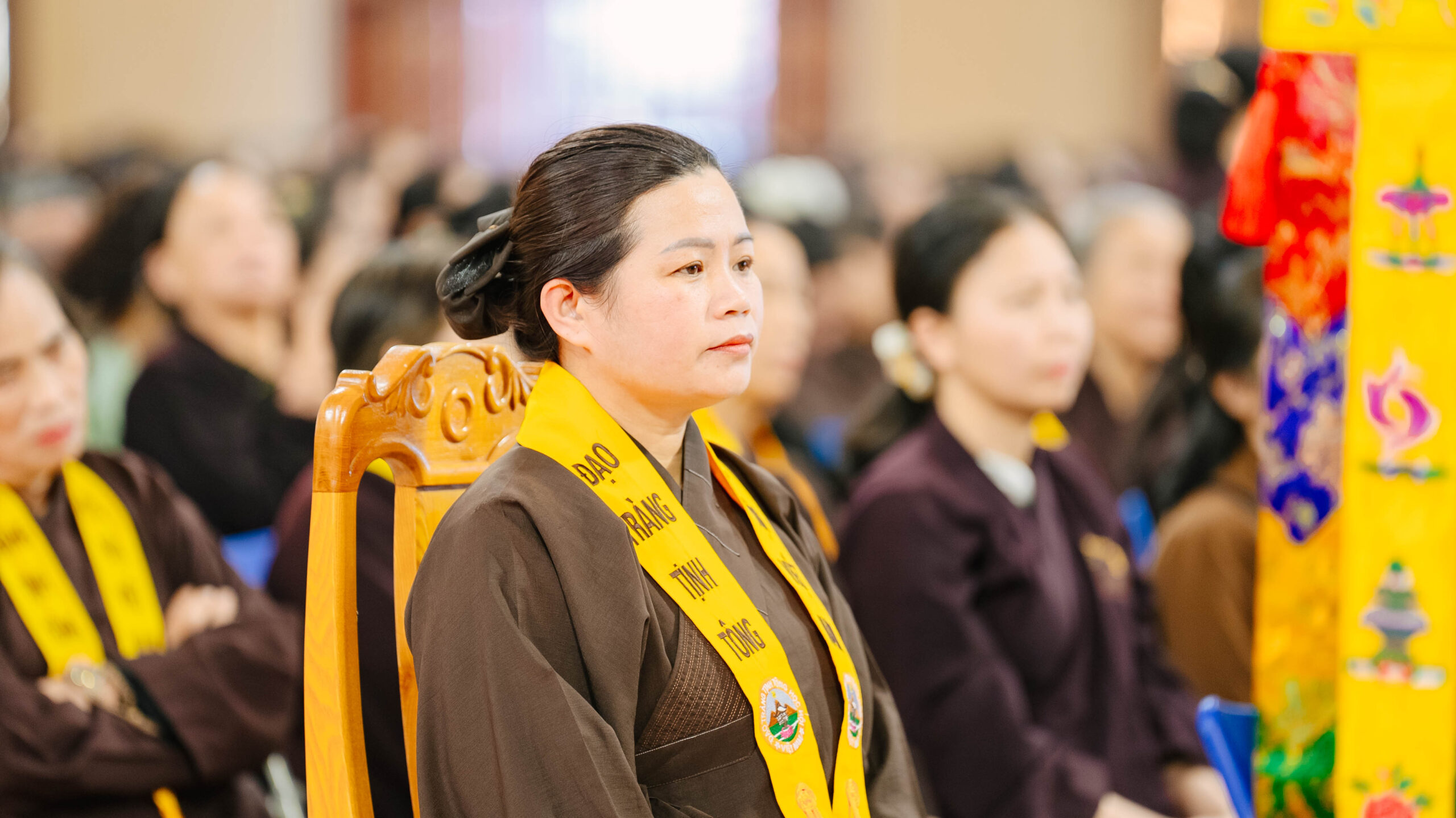 Để pháp hội diễn ra trang nghiêm và thuận duyên, không thể không nhắc đến sự đóng góp thầm lặng của các Ban Hộ tự cùng đông đảo Phật tử phát tâm công quả. Nhiều sinh viên tình nguyện thuộc CLB Thanh thiếu niên Phật tử Hương Từ Bi cùng sinh viên Trường Đại học Y học Cổ truyền và Đại học Thương mại đã tham gia chấp tác tại Ban Hậu cần và Ban Sớ điệp. Từ việc hướng dẫn Phật tử, sắp xếp đạo tràng đến chuẩn bị hậu cần, từng phần việc đều được các đạo hữu đảm trách tỉ mỉ với tinh thần “Phụng sự chúng sinh là thiết thực cúng dường chư Phật”. Dù là những công việc âm thầm nhưng đầy ý nghĩa, góp phần làm nên sự thành công và trang nghiêm của pháp hội.