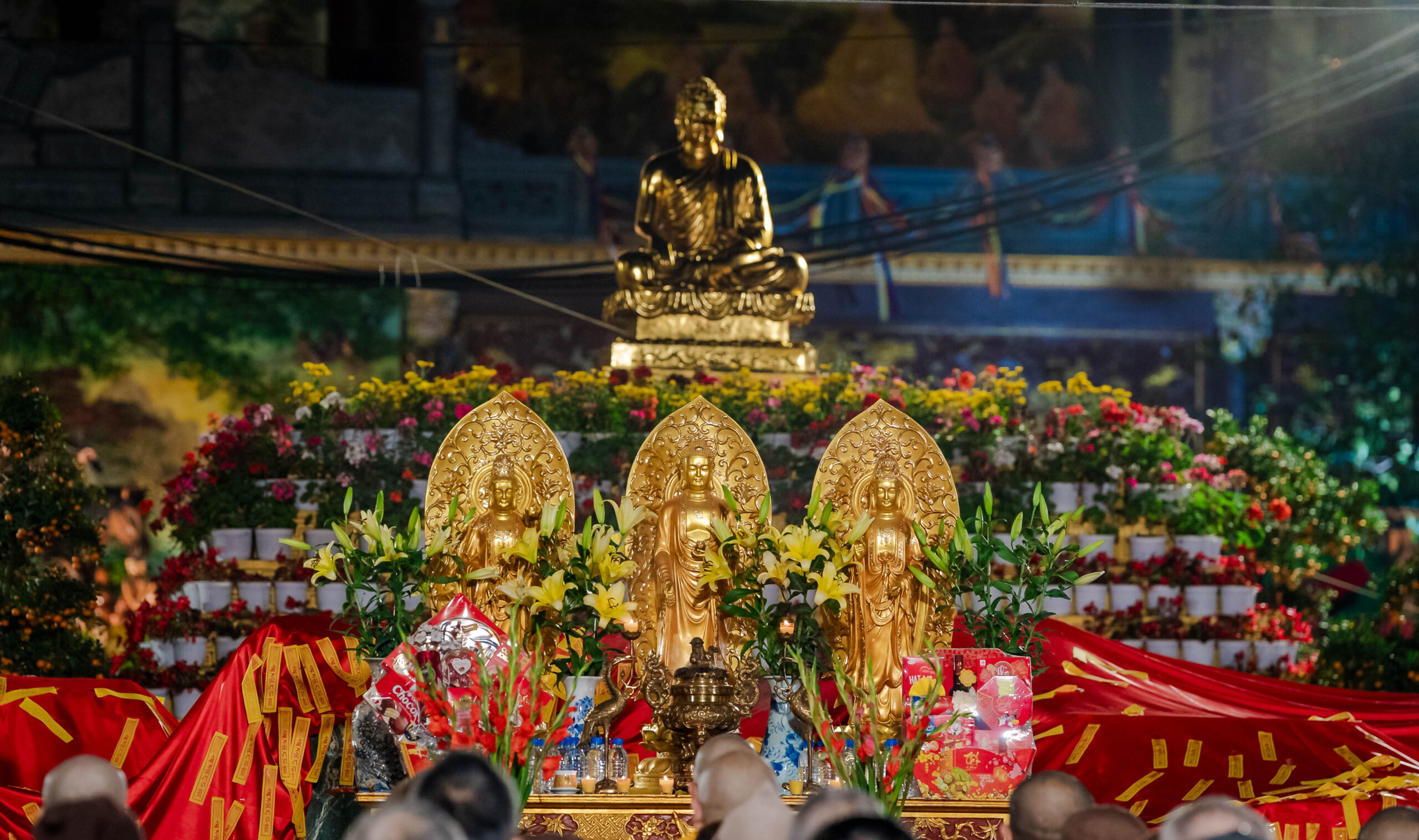 Vào buổi chiều các ngày pháp hội, dưới sự chủ trì và hướng dẫn của Thượng toạ Thích Đạo Thịnh, cùng quý Chư Tôn Đức Tăng Ni trong Đạo Tràng TTHHVN, các Phật tử dâng sớ cầu an đầu xuân, tu tập và thực hiện các nghi thức nhà Phật như thượng cúng, thời chuyên tu Đệ Nhất, Đệ Nhị, Đệ Tam, niệm Phật, cúng thí thực.
