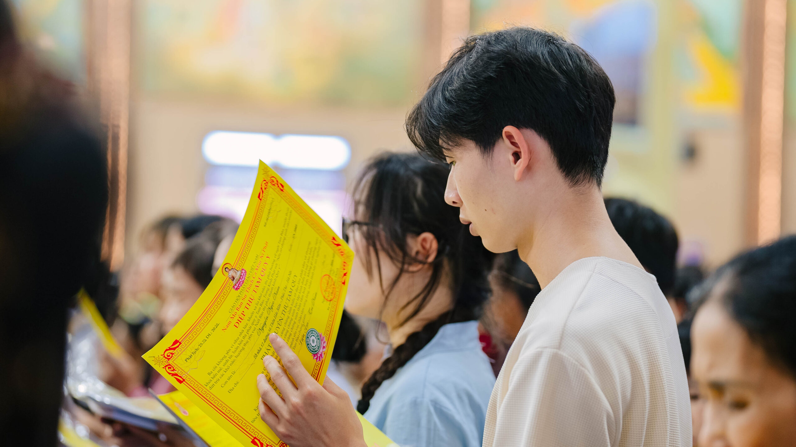 Chiều ngày 15/03/2026 (27 tháng Giêng năm Bính Ngọ), ngày cuối cùng của pháp hội, chùa Khai Nguyên đã trang nghiêm tổ chức Lễ Quy Y Tam Bảo cho đông đảo thiện nam tín nữ phát tâm trở thành người con Phật. Trong nghi lễ thiêng liêng này, các Phật tử phát nguyện nương tựa nơi Phật – Pháp – Tăng, chính thức bước những bước đầu tiên trên con đường tu học. Sau đó, đạo tràng đã trang nghiêm cử hành nghi thức hóa sớ, hồi hướng toàn bộ công đức tu tập trong suốt 9 ngày pháp hội đến pháp giới chúng sinh, cầu nguyện cho thế giới hòa bình, muôn loài an lạc.