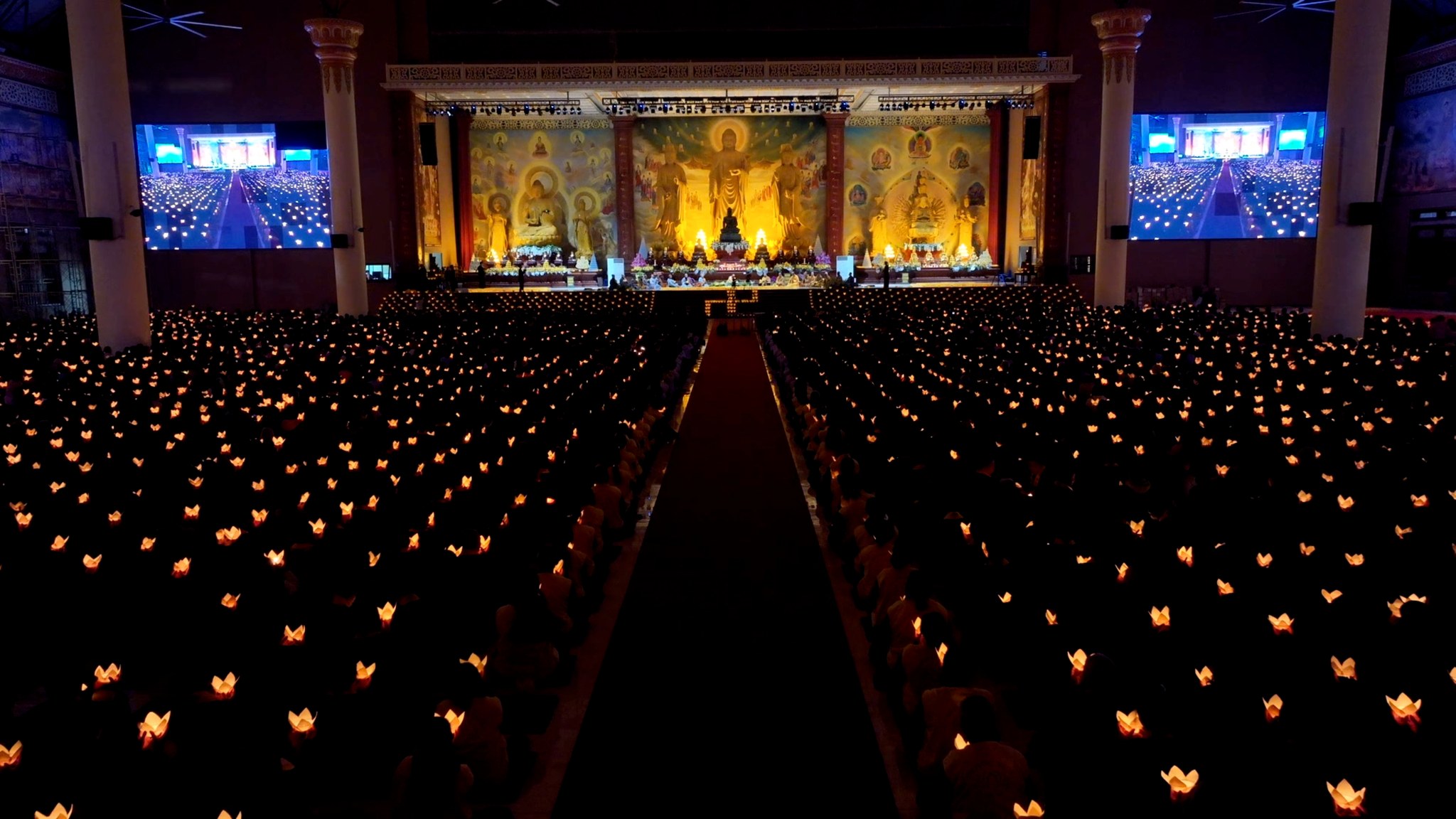 Với tấm lòng thành kính, Thượng tọa Thích Đạo Thịnh – Trụ trì chùa Khai Nguyên cùng Chư tôn đức Tăng Ni và gần 10 nghìn Phật tử Đạo tràng Tịnh Tông Học Hội Việt Nam đã cùng nhau thắp sáng những ngọn hoa đăng rực rỡ hướng về Đức Từ Phụ. Giữa không gian tại Pháp tòa Diệu Pháp Đường, hàng nghìn ngọn hoa đăng được thắp sáng, mỗi ngọn đèn là một lời nguyện cầu, là ánh sáng của trí tuệ xua tan vô minh. Trong giây phút ấy, mỗi hành giả như được sống trong sự che chở của Ngài, nơi lòng thành kính và niềm hỷ lạc lan tỏa.
