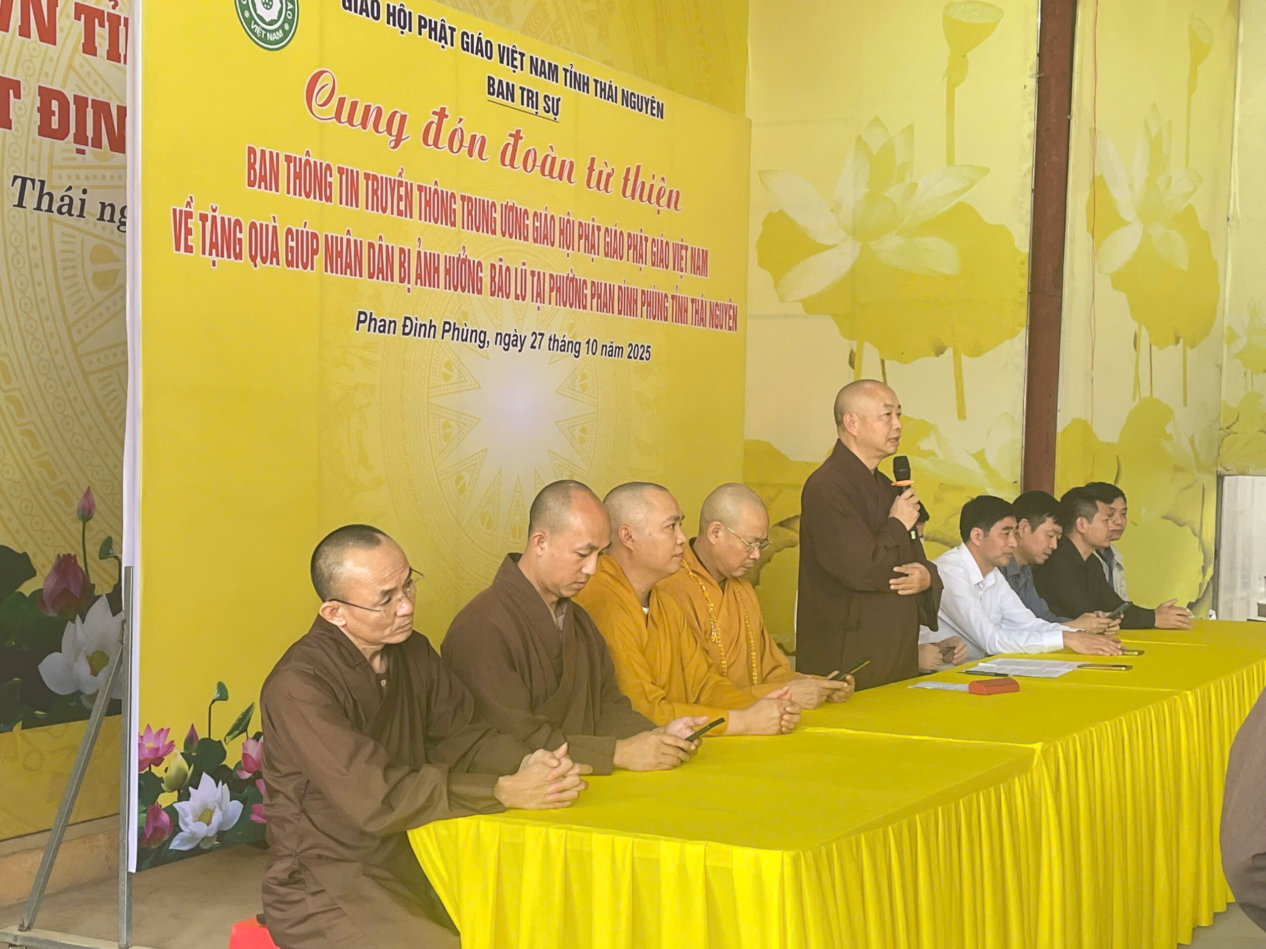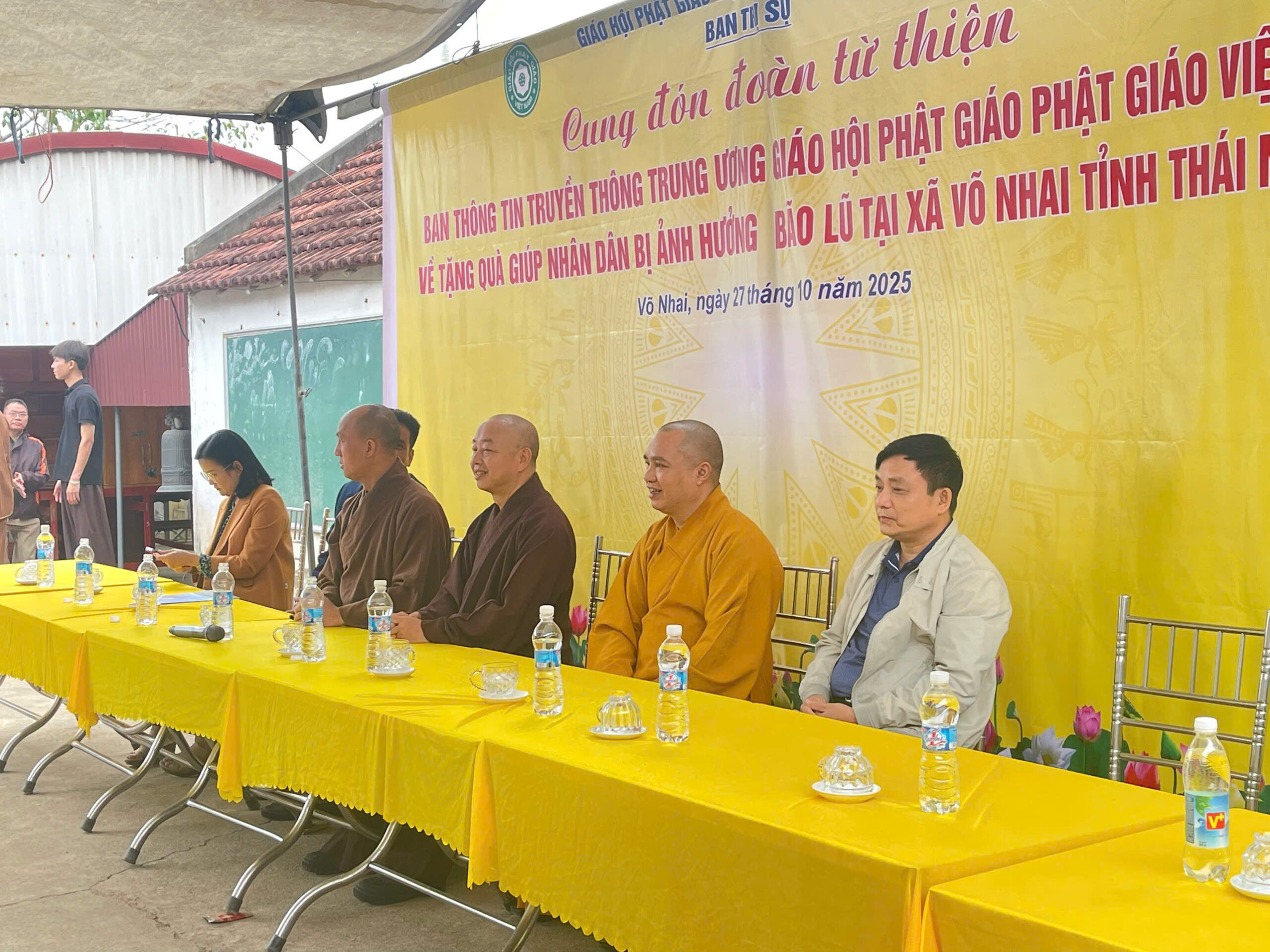 Ngay từ sáng sớm ngày 27/10/2025, Ban Thông tin Truyền thông TƯ GHPGVN cùng Chư Tôn đức Tăng Ni và Phật tử Đạo tràng Tịnh Tông Học Hội Việt Nam đã thực hiện chuyến thiện nguyện đến xã Võ Nhai và phường Phan Đình Phùng, tỉnh Thái Nguyên – những nơi mà chính quyền và người dân vẫn đang nỗ lực khắc phục hậu quả sau đợt bão lũ vừa qua.