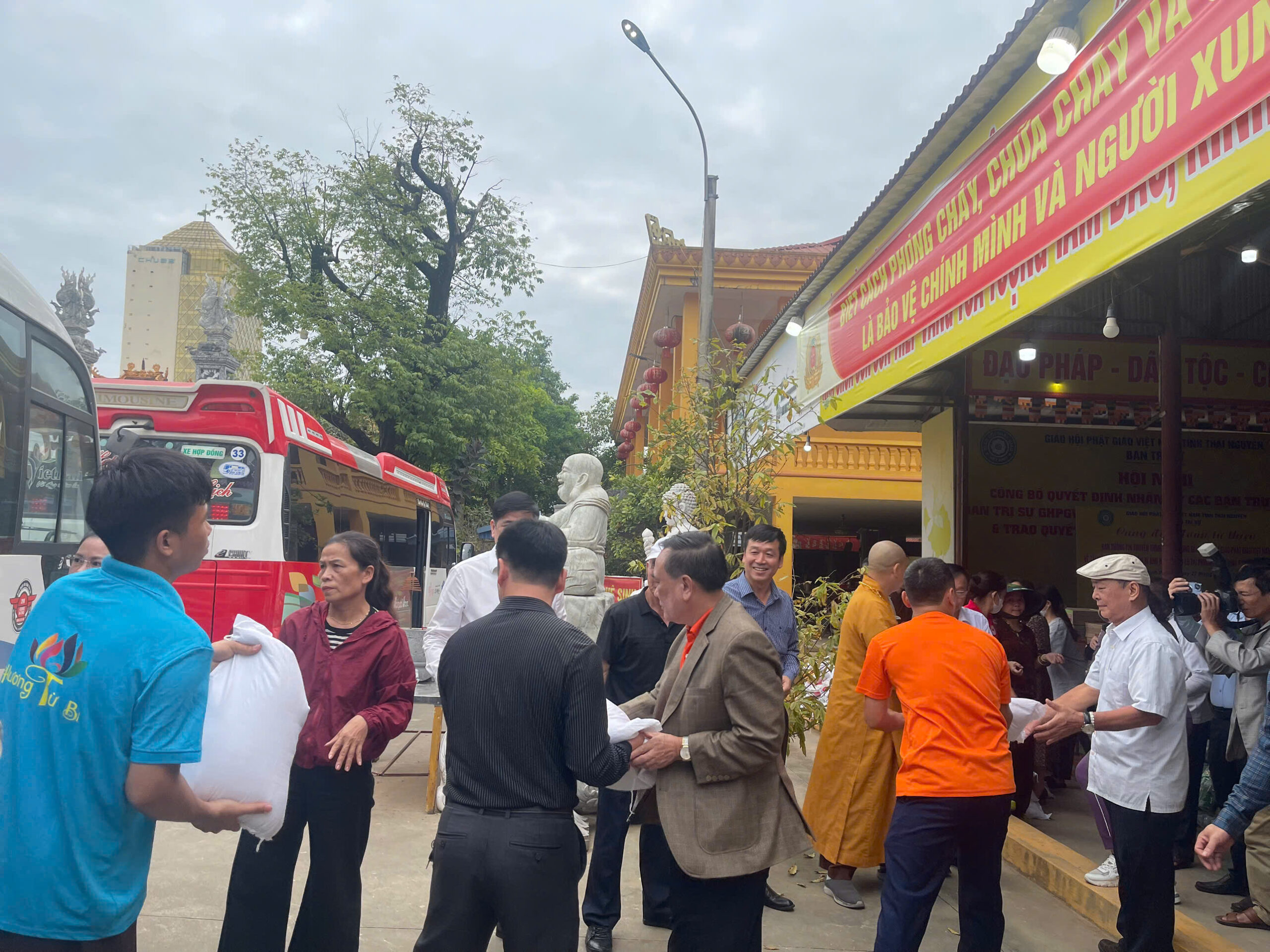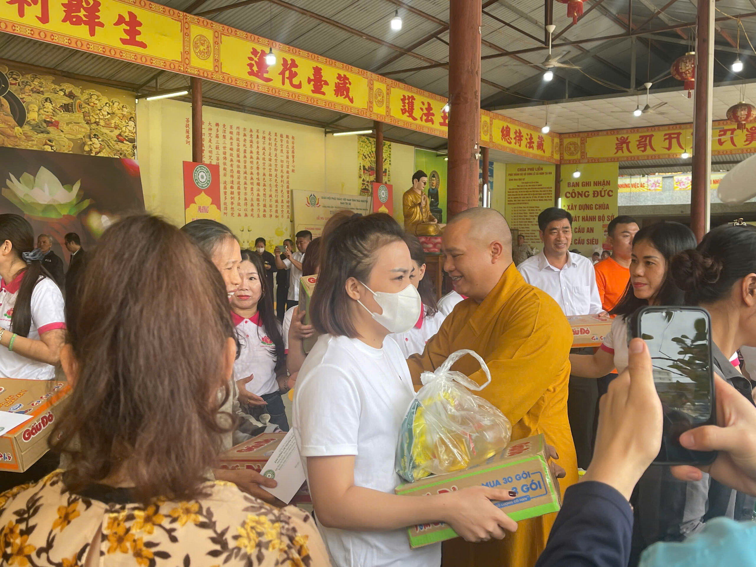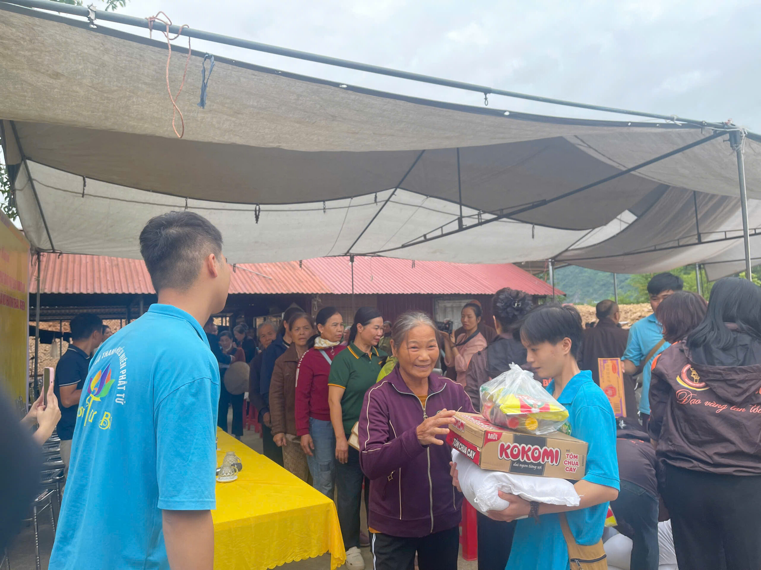 Cùng với đó, đoàn trao tặng 400 phần quà đến bà con tại chùa Xả (xóm Thái Long, xã Võ Nhai) và chùa Phù Liễn (phường Hoàng Văn Thụ, TP. Thái Nguyên). Mỗi phần quà gồm tiền mặt và các nhu yếu phẩm thiết yếu như gạo, muối, hạt nêm, mì tôm… với tổng giá trị khoảng 600 triệu đồng. Những phần quà giản dị nhưng chứa đựng tình người sâu sắc đã mang đến niềm vui và sự ấm áp cho bà con. Khi nhận quà, nhiều người không giấu được niềm xúc động, đôi mắt rạng ngời hy vọng, nụ cười hé mở trên môi giữa những khó khăn sau thiên tai.