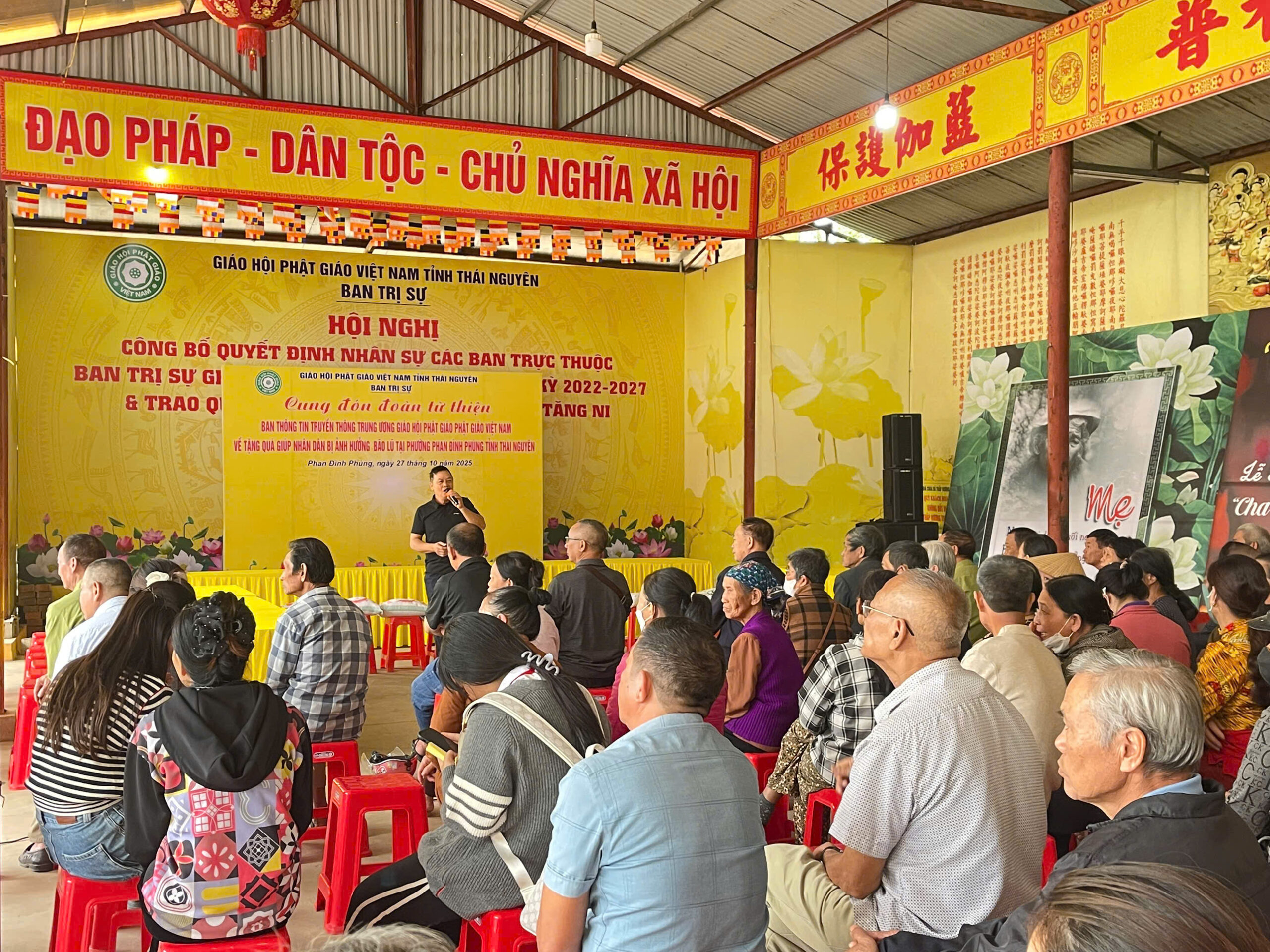 Chuyến thiện nguyện do Ban Thông tin Truyền thông TƯ GHPGVN phối hợp với Tăng Ni, Phật tử Đạo tràng TTHHVN chùa Khai Nguyên và Phòng An ninh Nội địa – Công an tỉnh Thái Nguyên tổ chức. Về phía Giáo hội có sự hiện diện của Thượng tọa Thích Thanh Huân – Ủy viên Thư ký HĐTS, Phó Chánh văn phòng I TƯ GHPGVN; Thượng tọa Thích Đạo Thịnh – Ủy viên HĐTS, Phó Chánh văn phòng I TƯ GHPGVN, Trụ trì chùa Khai Nguyên.