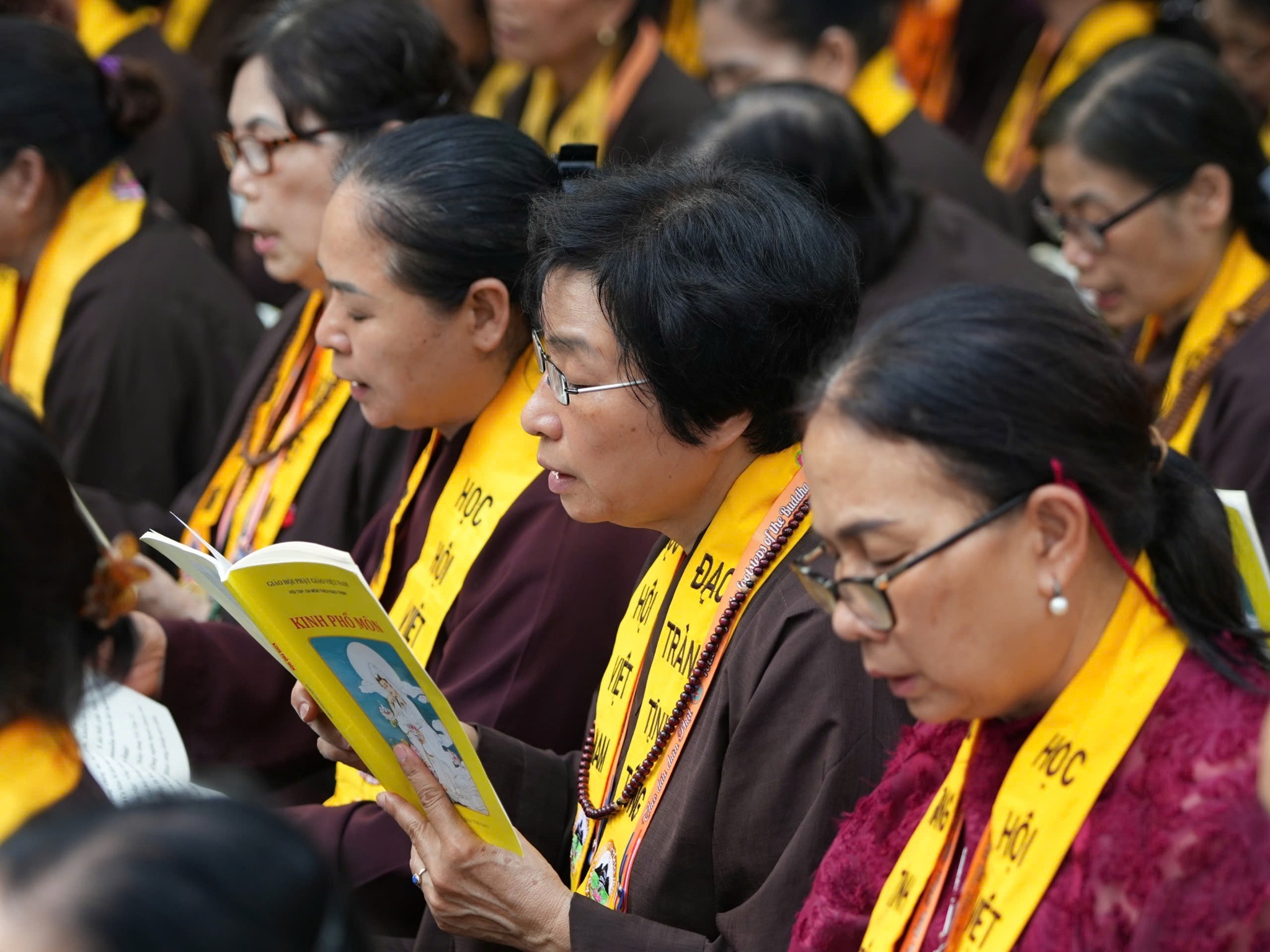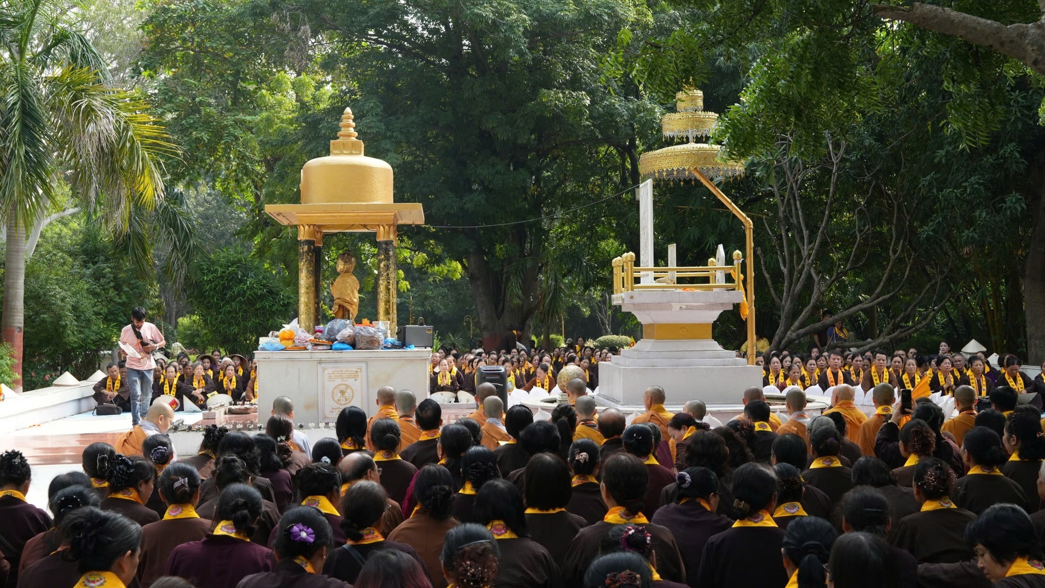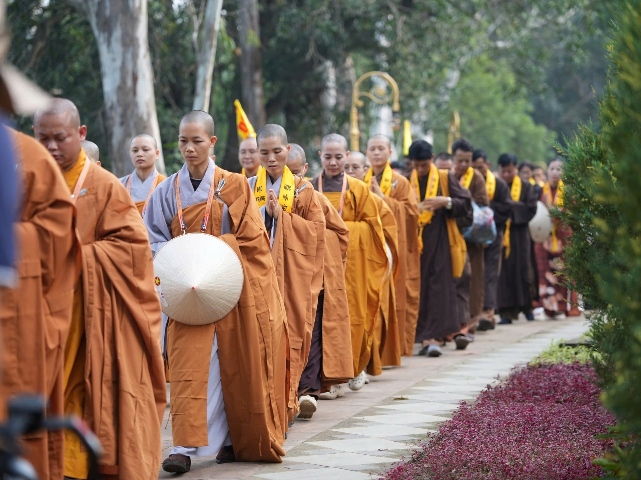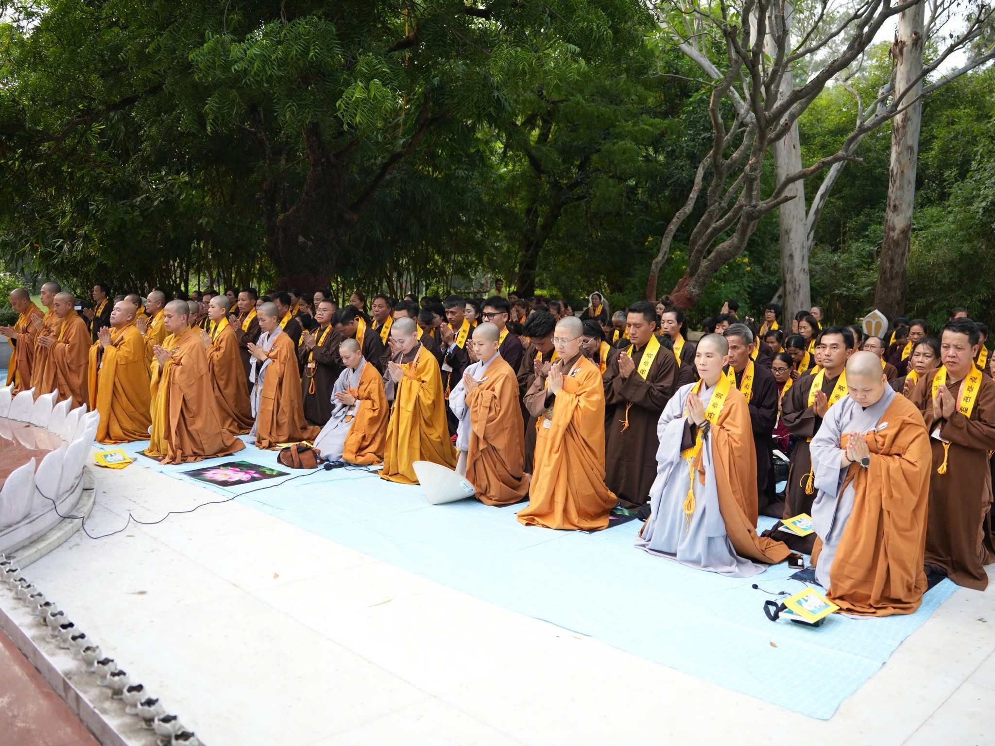 Trong không khí trang nghiêm, đại chúng đồng chí tâm cầu nguyện: “Nguyện bước theo dấu chân Phật, nuôi dưỡng chánh niệm, phát khởi tâm Từ – Bi và hộ trì Phật pháp giữa cuộc đời.”