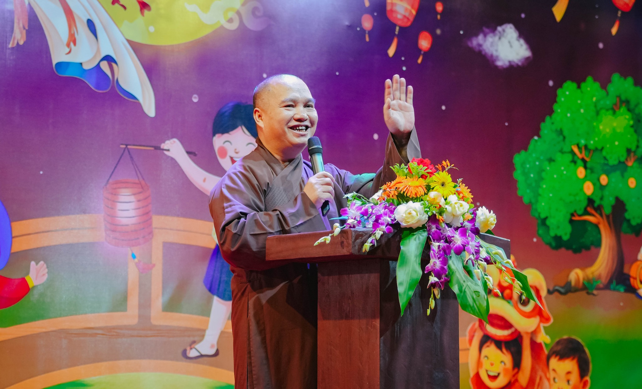 Tại buổi liên hoan vui Trung thu, Thượng tọa Thích Đạo Thịnh thay mặt Ban Tổ chức phát biểu khai mạc, có lời chúc tốt đẹp nhất tới các vị đại biểu và các cháu thiếu nhi nhân Tết Trung thu cổ truyền 2025. Thượng tọa bày tỏ: “Có sự phối hợp của chính quyền xã Lương Sơn, thôn Cố Thổ cũng như các thôn sở tại và chùa Quất Lâm, hôm nay chùa Quất Lâm tổ chức đêm hội Trung thu trăng rằm cho các con, thay lời Ban tổ chức, thầy xin chúc tất cả các con luôn luôn được vui vẻ, mạnh khỏe, hạnh phúc, chăm ngoan học giỏi. A di đà Phật!”.