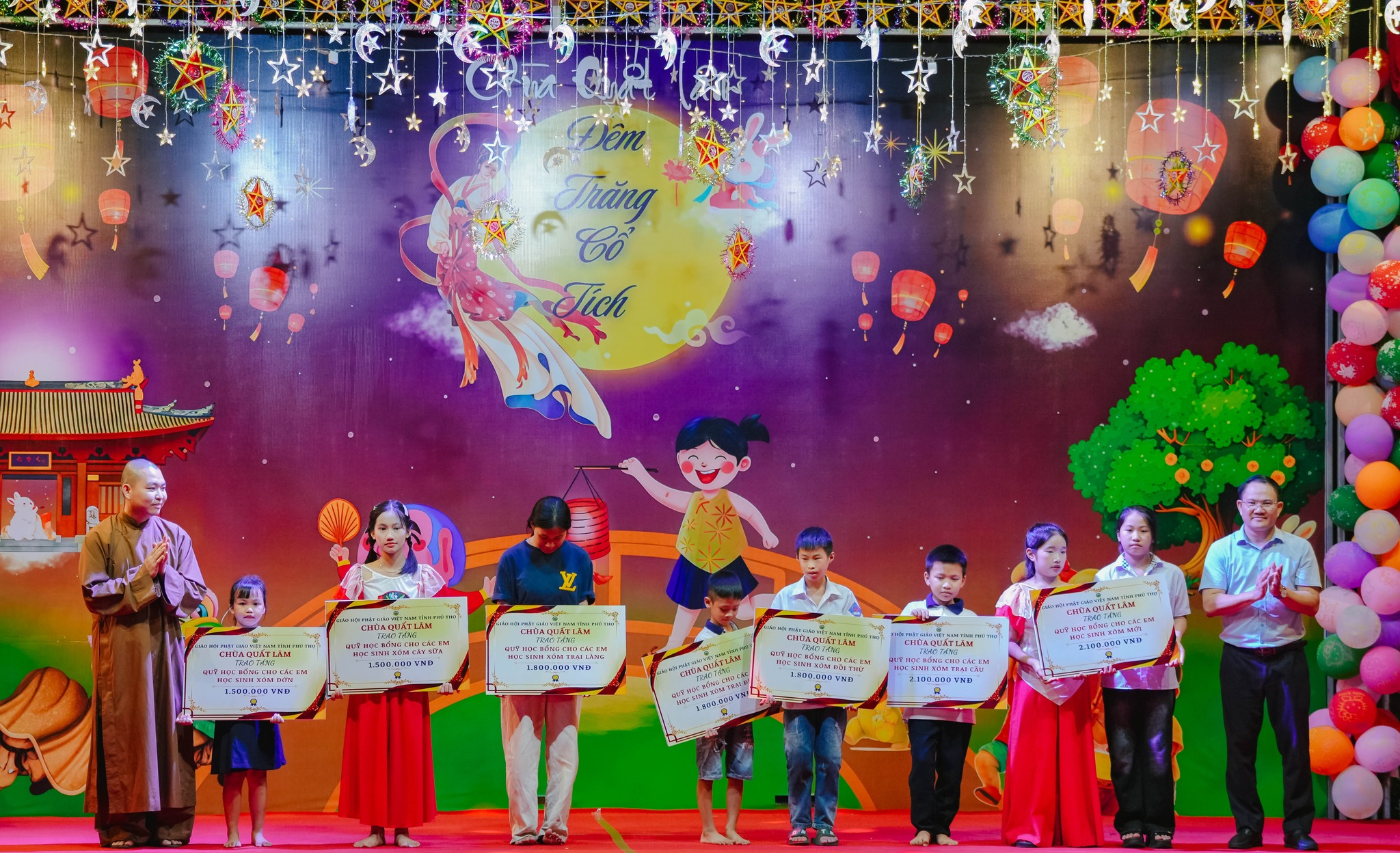 Nhân dịp Tết Trung thu năm nay, tối ngày 4/10/2025 (nhằm ngày 13/08 năm Ất Tỵ), Chùa Quất Lâm (thôn Cố Thổ, xã Lương Sơn, tỉnh Phú Thọ) đã long trọng tổ chức Chương trình “Đêm trăng cổ tích” cho hơn 300 em thiếu nhi địa phương, dưới sự chỉ đạo và hướng dẫn của Sư phụ trụ trì – Thượng Tọa Thích Đạo Thịnh – Ủy viên Hội đồng Trị sự, Phó Chánh VP TW Giáo hội Phật giáo Việt Nam, Phó Trưởng ban xây dựng Trung tâm Phật giáo Hùng Vương tỉnh Phú Thọ, cùng Chư tôn Đức Tăng Ni, hàng Phật tử và các bạn tình nguyện viên trong Câu lạc bộ Thanh thiếu niên Phật tử Hương Từ Bi, đã cùng tổ chức, tạo nên một ngày Tết Đoàn viên ý nghĩa nơi sân chùa.