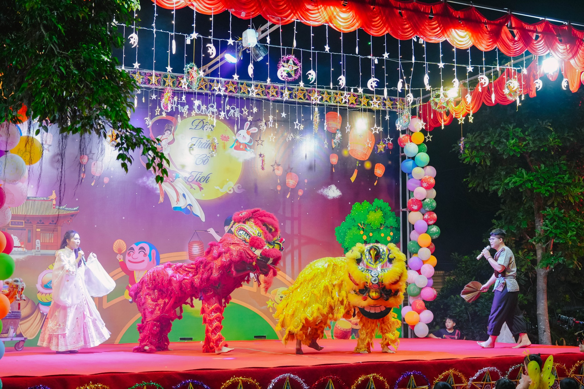 Tiếp theo chương trình, các em thiếu nhi được hòa mình vào không khí tươi vui trong các trò chơi, đố vui múa lân, rước đèn ông sao do các Phật tử Câu lạc bộ Thanh thiếu niên Phật tử Hương Từ Bi trình diễn. Tiết mục chị Hằng, anh Cuội và anh Bờm đã mang đến niềm hân hoan không chỉ dành riêng cho các em thiếu nhi mà còn khiến các bậc cha mẹ vô cùng hoan hỉ, gợi nhớ về những ký ức đẹp của thời thơ ấu trong mỗi dịp đón Tết Trung thu về.