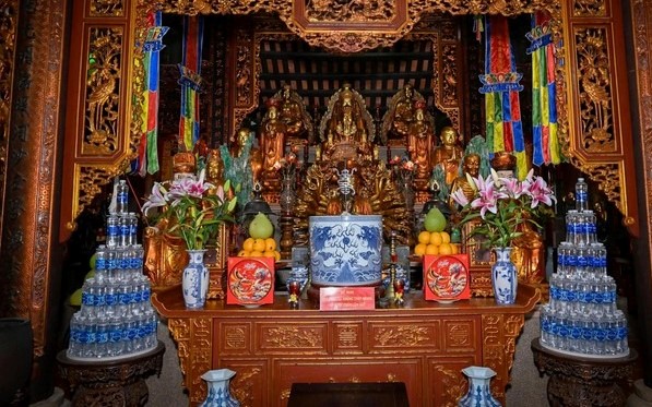 Giữa không gian mênh mang của núi và biển, Linh Phong Thiền Uyển vẫn giữ dáng vẻ cổ kính của những ngôi chùa Bắc Bộ. Mái ngói cong vút hình “lưỡng long chầu nguyệt”, cột lim sơn son thếp vàng, cùng những đường chạm khắc tinh tế gợi nét uy nghi và thanh tịnh.